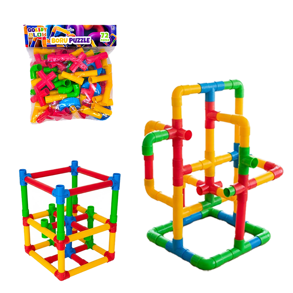 Blok Boru Puzzle Renkli Eğitici Birleştirme Oyuncak Seti 72 Parça