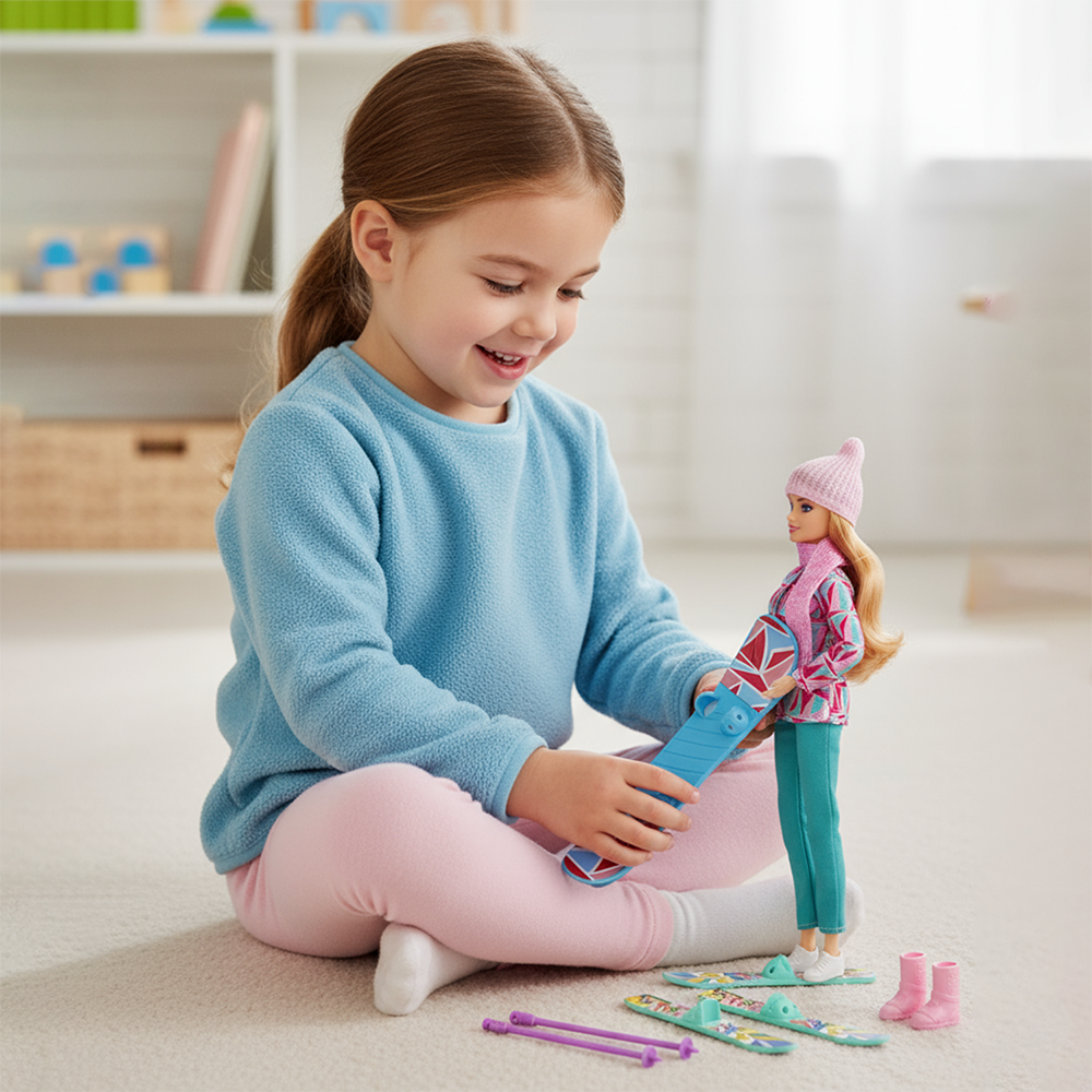 Kayak takımı, snowboard, batonlar ve aksesuarlarıyla çocuklara eğlenceli bir kış tatili deneyimi sunar