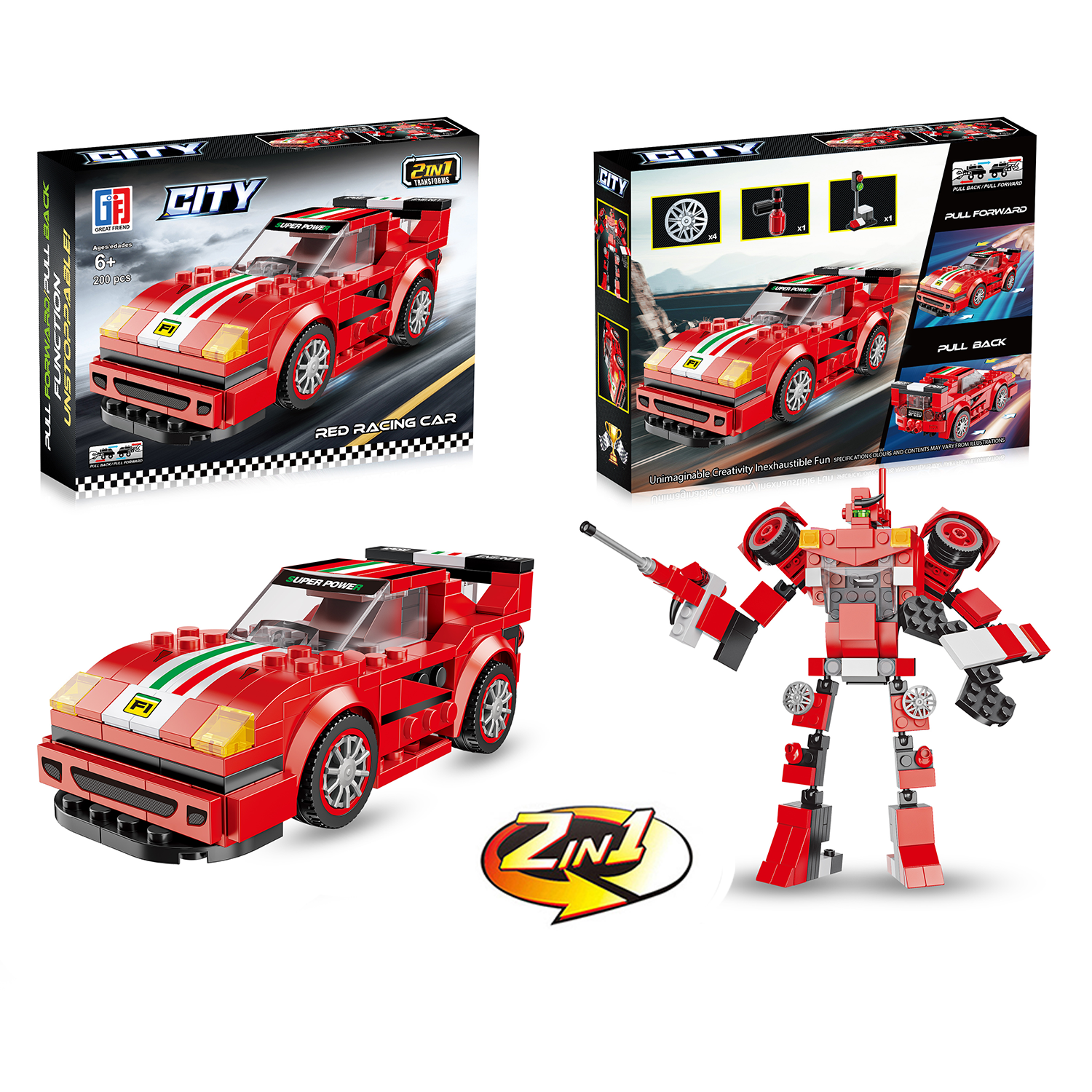 Hayal Gücünü Gerçeğe Dönüştür! Çocuklar için hem eğlenceli hem de geliştirici bir oyuncak arıyorsanız, bu 2'si 1 arada yapı seti tam size göre! Parçaları birleştirerek ister güçlü bir kırmızı yarış arabası, ister havalı bir savaşçı robot oluşturabilirsiniz