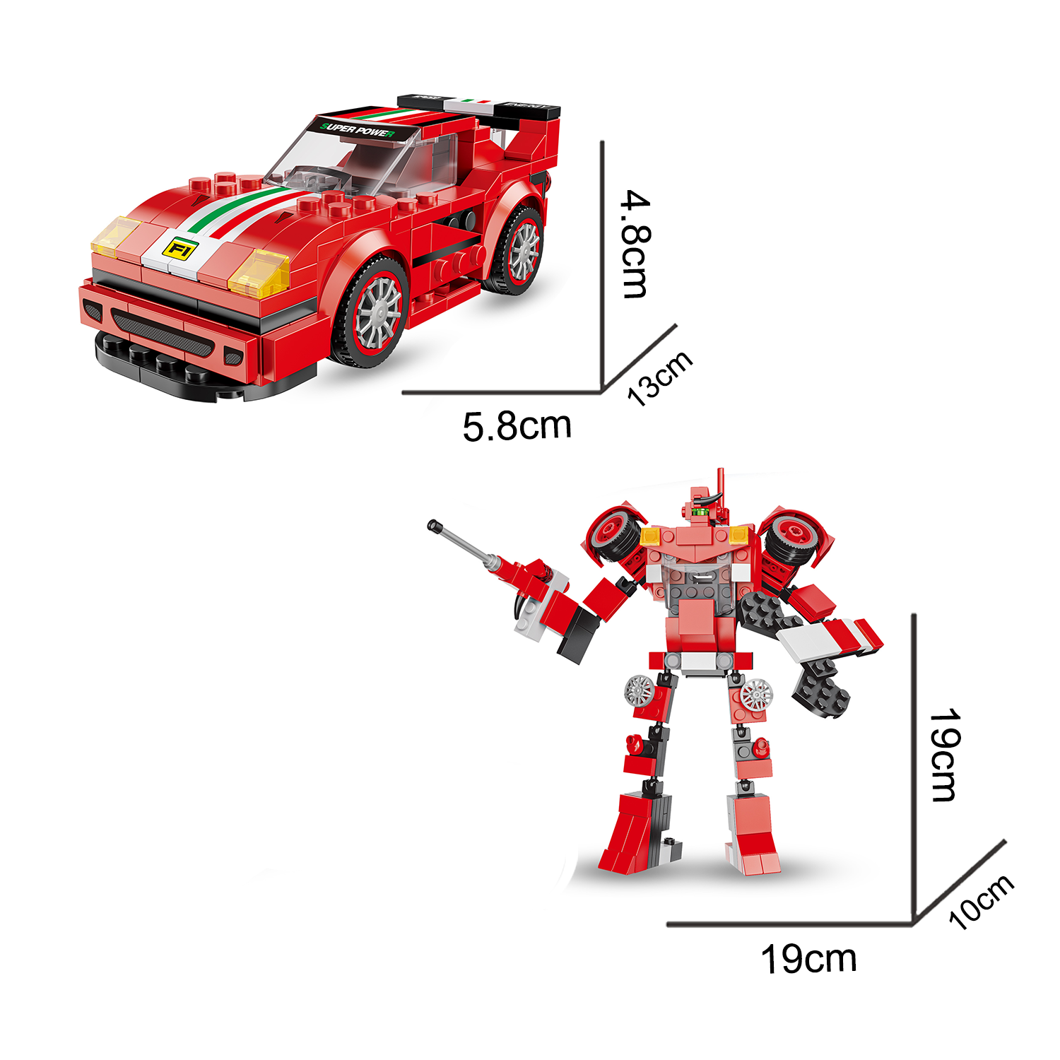 2'si 1 Arada Kırmızı Yarış Arabası & Robot Yapı Oyuncağı