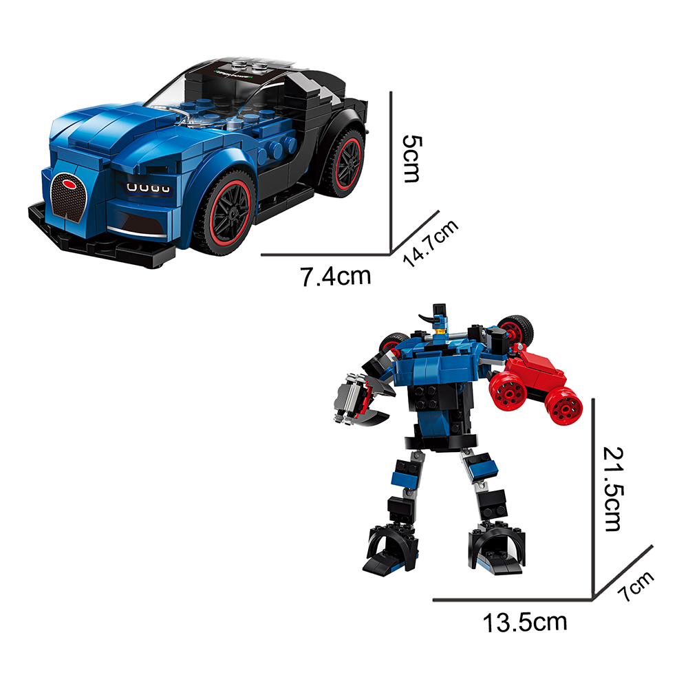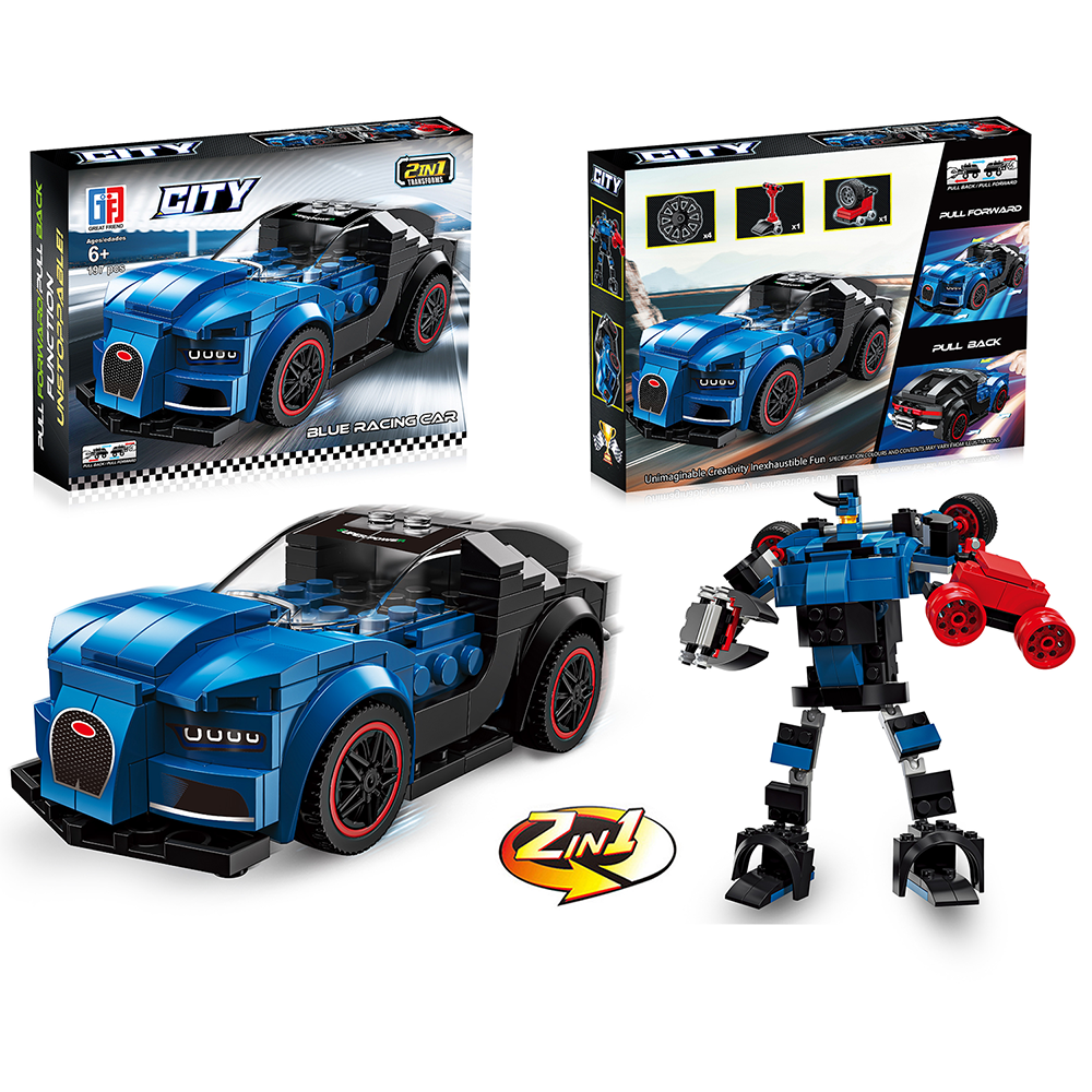 2'si 1 Arada Mavi Yarış Arabası & Robot Yapı Oyuncağı